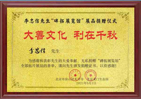 李忠信先生捐赠“龙门碑拓展览馆”在京开放